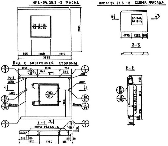 НР2л-34.29.3-3 Наружная стеновая панель рядовая по Серии 1.132-2.